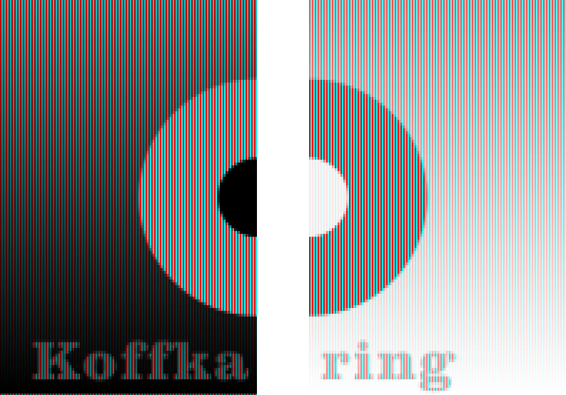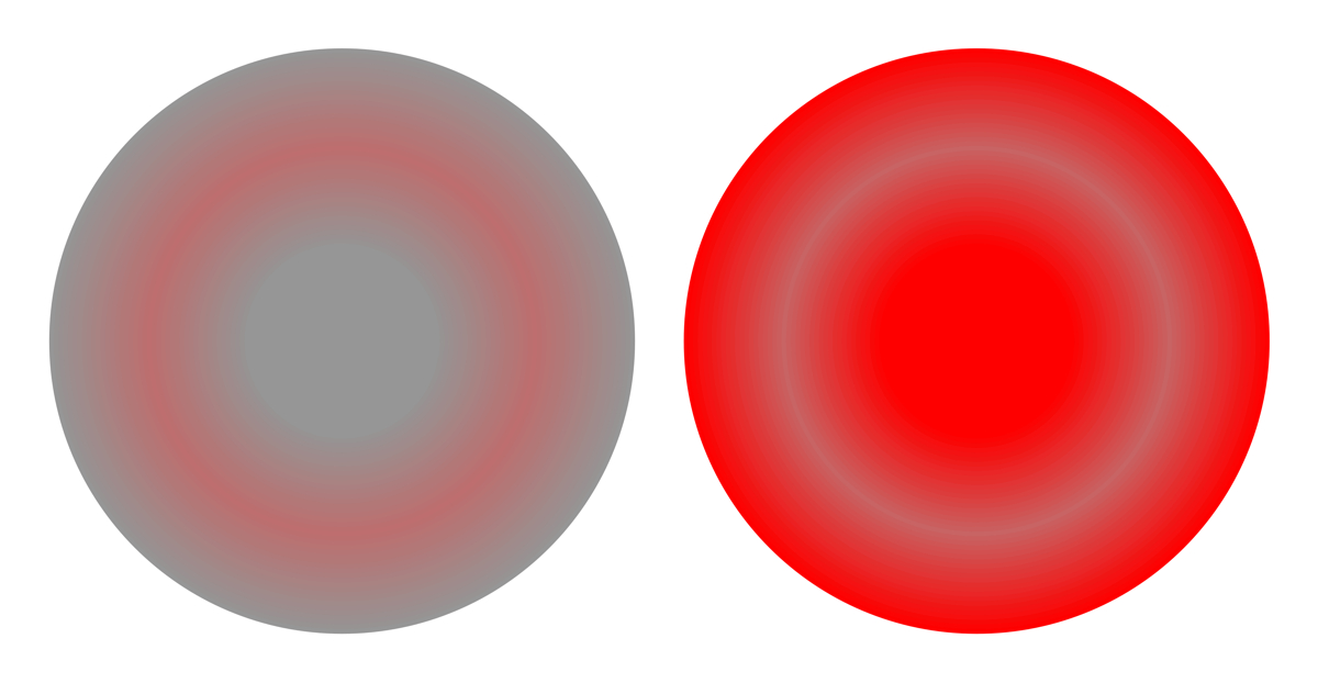 Spatial color mixture with two colors (left: additive color mixture, right: subtractive one)