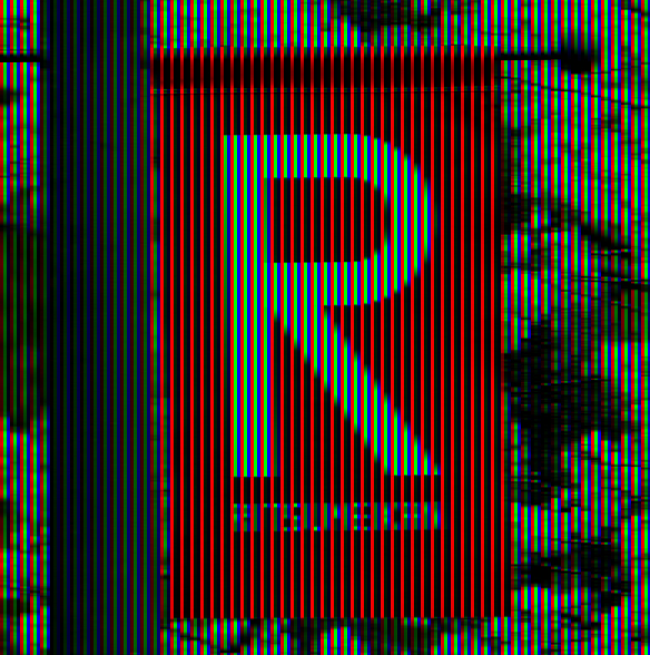 A light-bluish letter 'R' appears to be written in a black flag, but it appears to be white and lie in a red flag when seen in a small display or when seen with blur or motion.