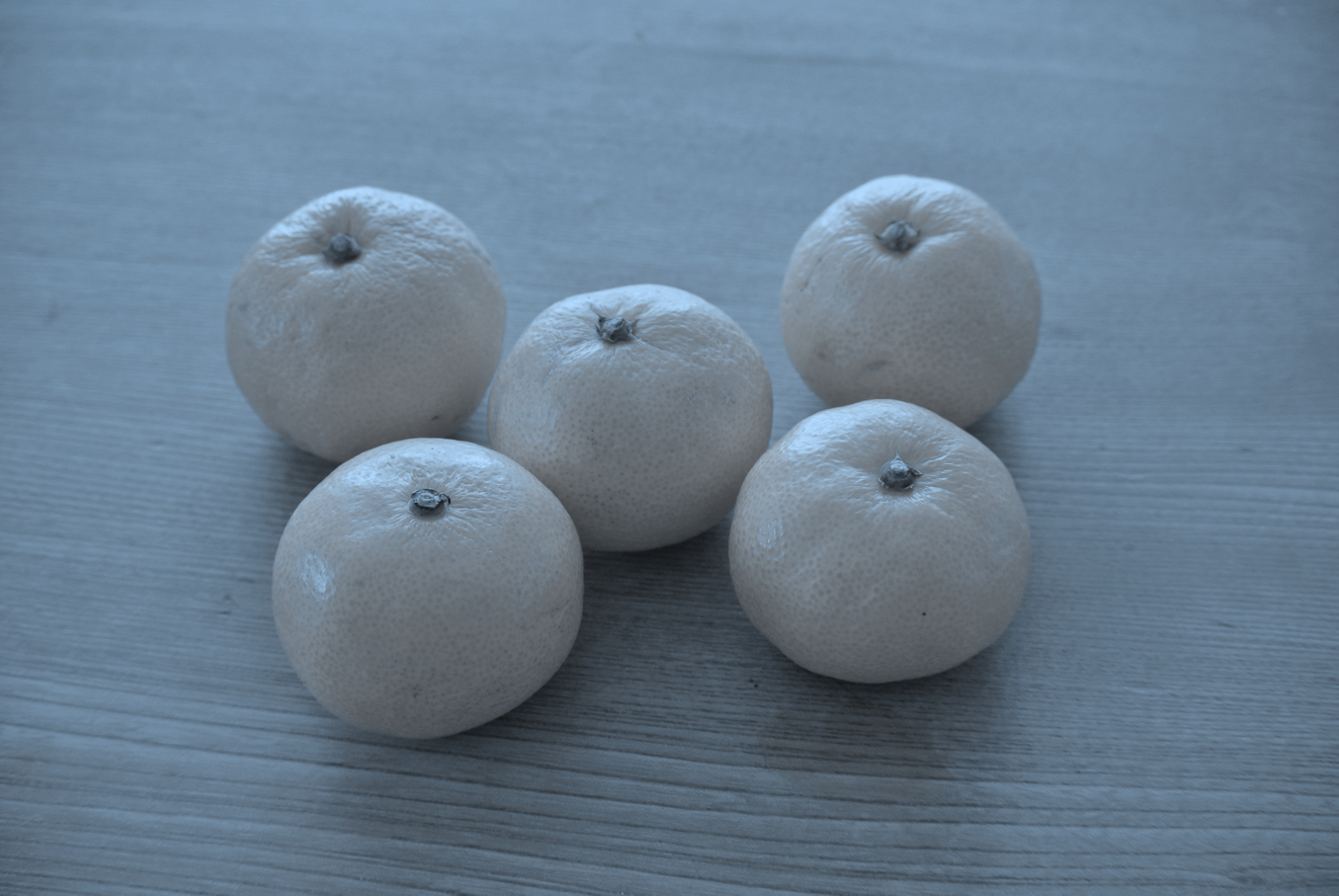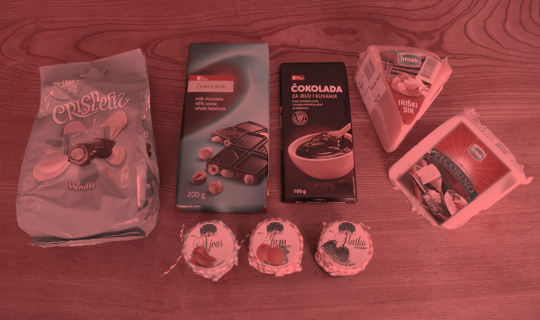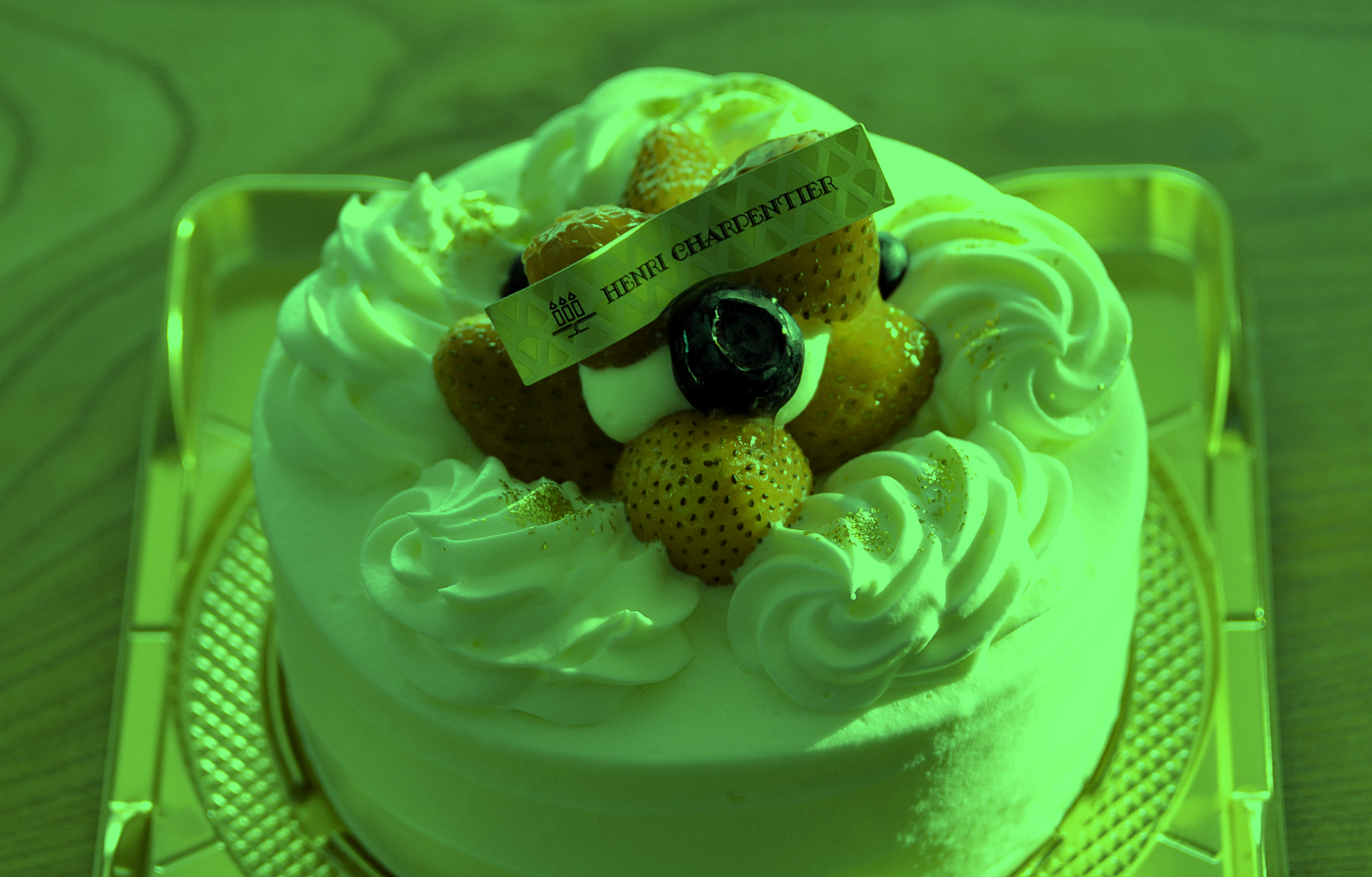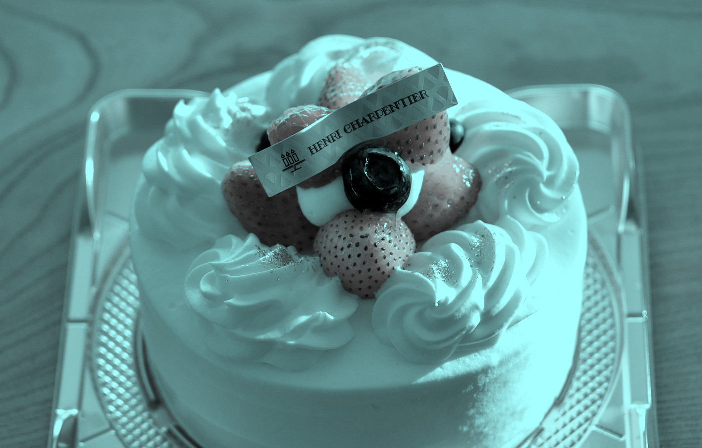 There appear to be illusory red strawberries though they mainly consist of pixels of cyan hue.