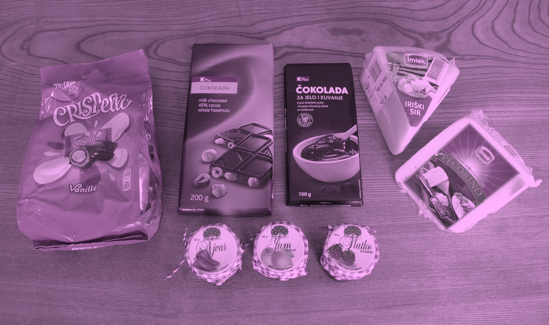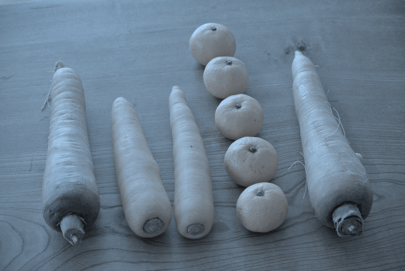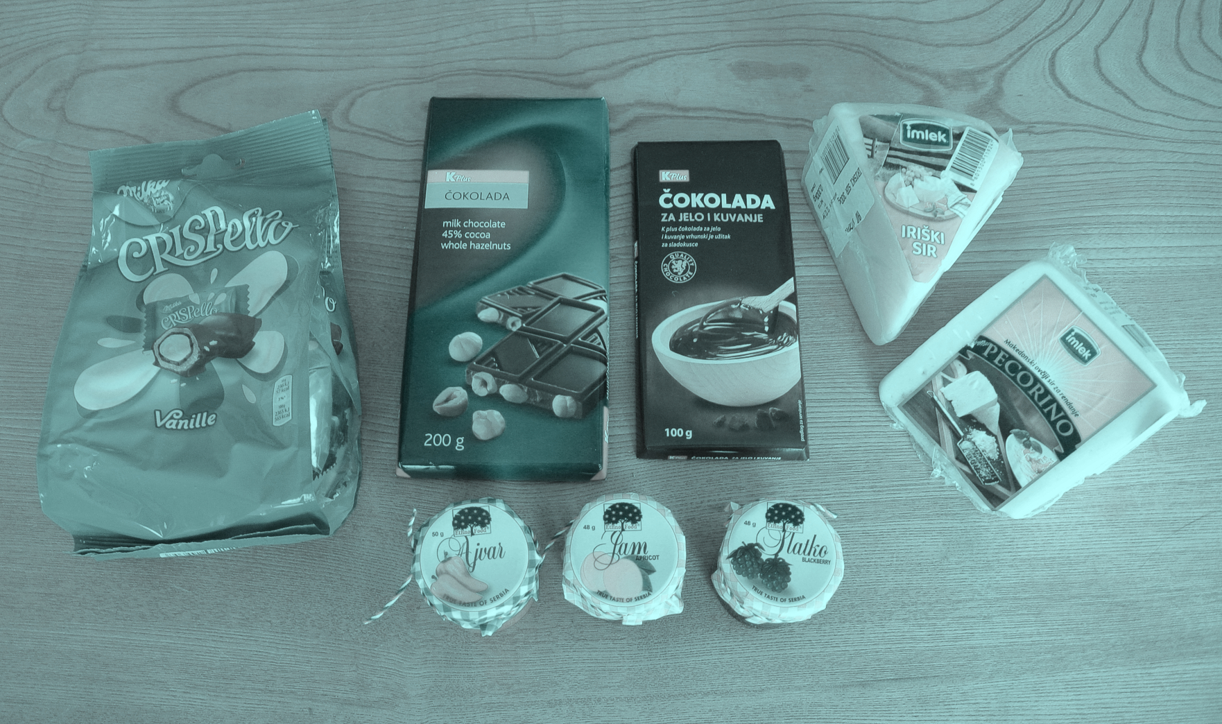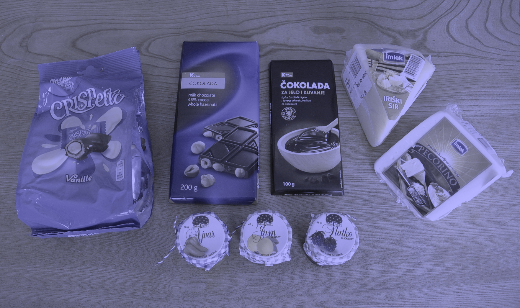 There appear to be illusory red strawberries though they mainly consist of pixels of cyan hue.