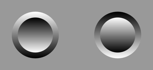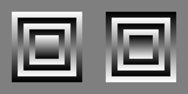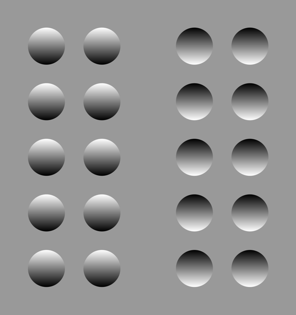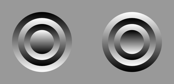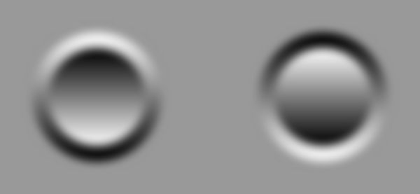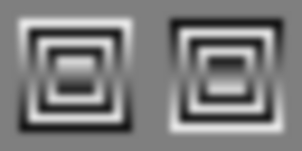 A standard image, which shows an apparent concave in the center of the left image and an apparent convex in the center of the right image.