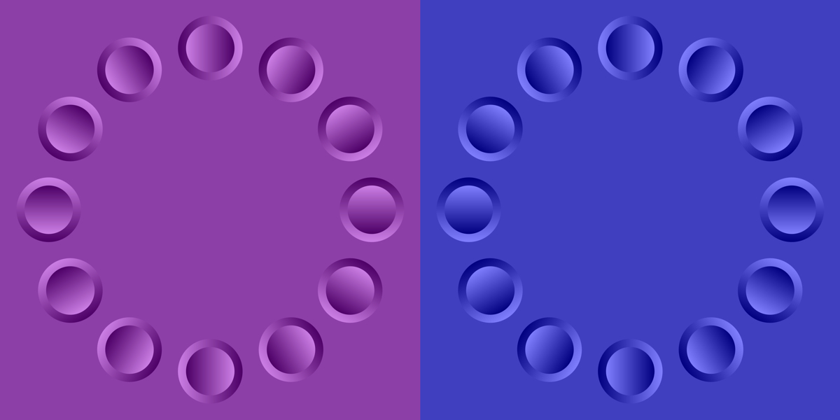 The left ring appears to rotate counterclockwise while the right clockwise.