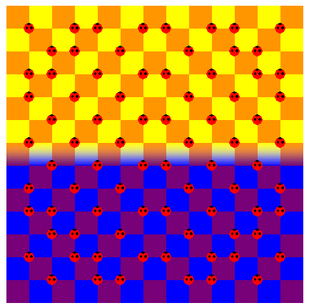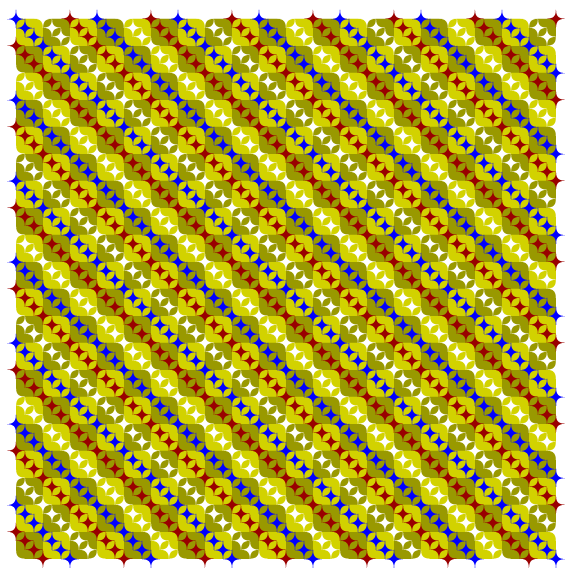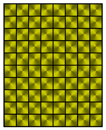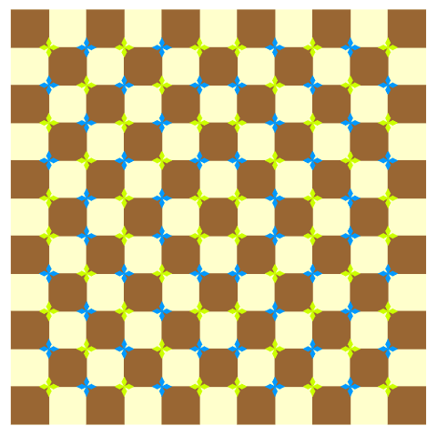 The yellow checkerboard consists of only squares but appears to be corrugated.