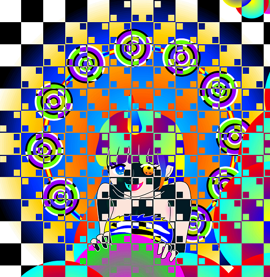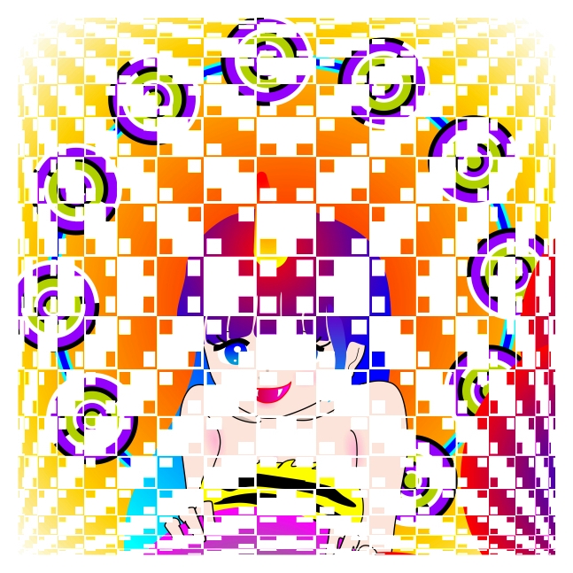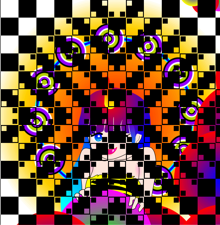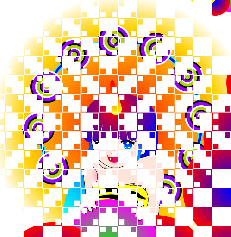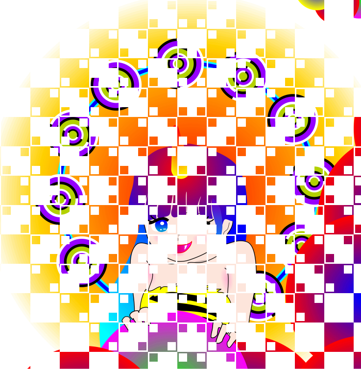 The apparent white layer in front of the thunder girl appears to bulge, though the layer consists of only squares.