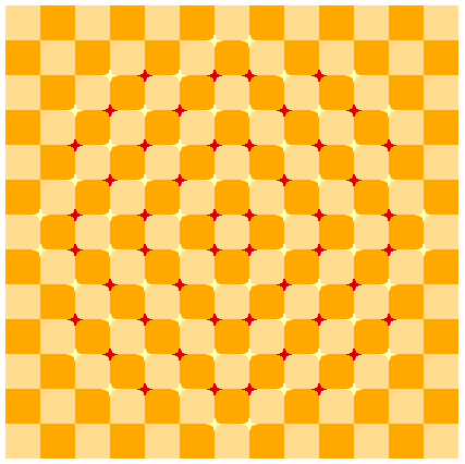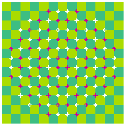 This checkered background consists of squares but appears to be distorted. In addition, this figure shows a great amount of anomalous motion illusion.