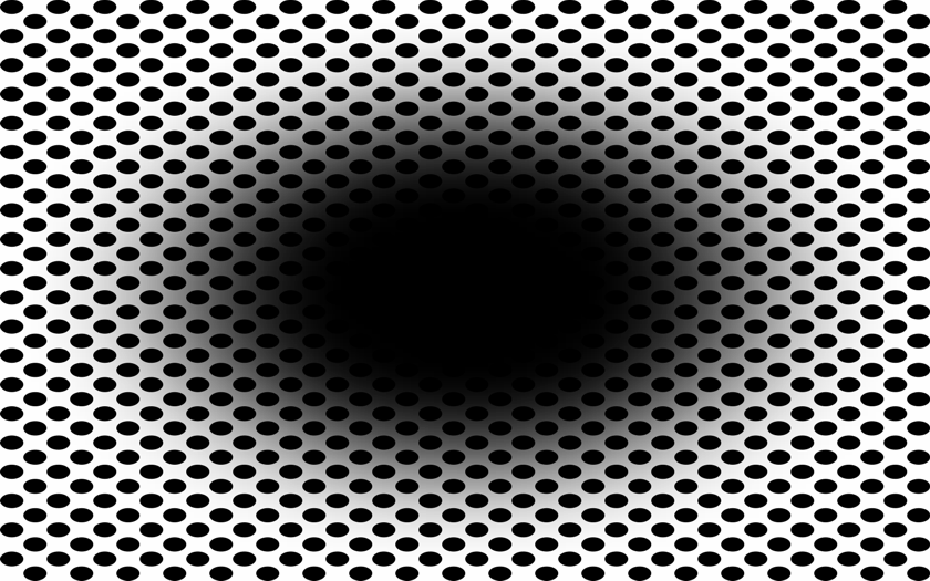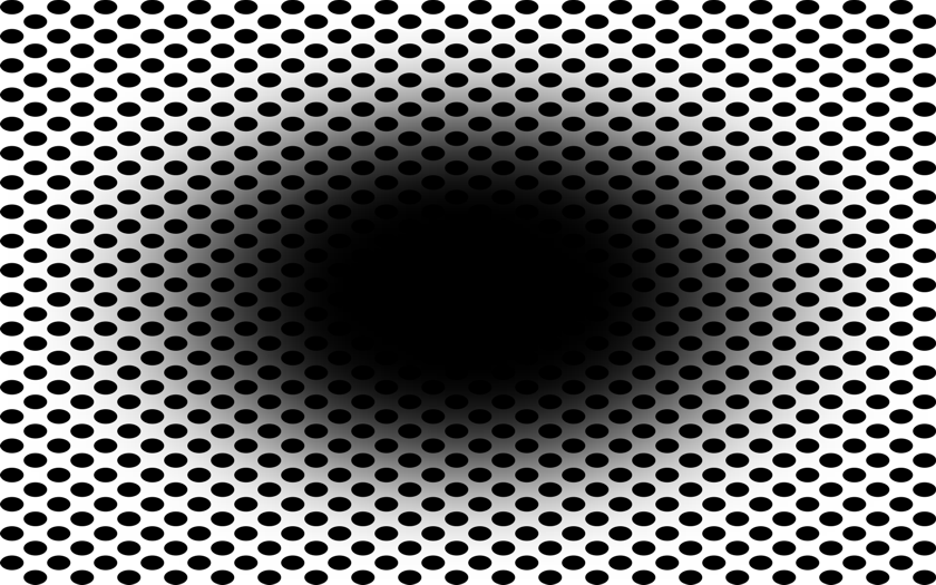 Without dots, the black hole appears to expand when the image is darkened to black-out, while it appears to contract when the image appears.