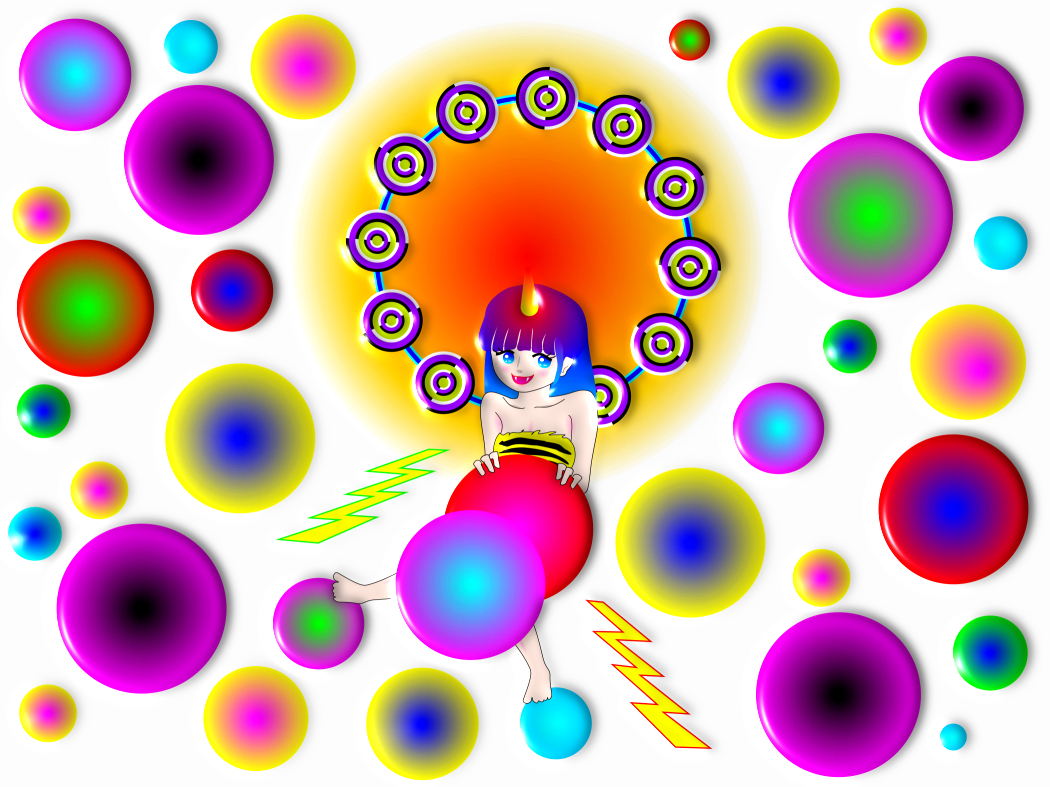 Disks appear to expand or contract. The ring of 'drums' appears to rotate clockwise.