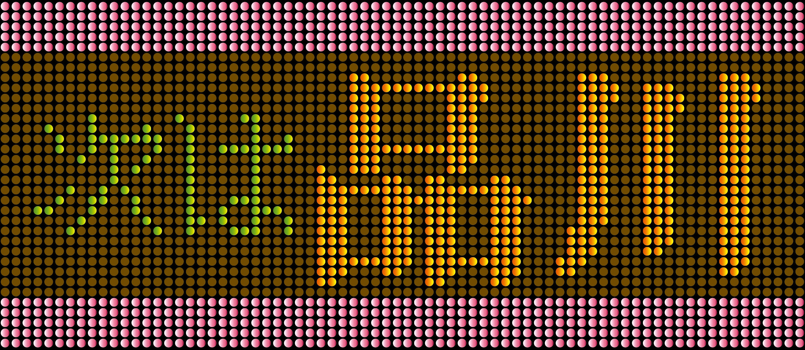 "Merry" appears to be colored orange whereas "Christmas" to be colored lemon, though they are the same yellow. Actually, this image consists of three colors, i.e., red, yellow and green.