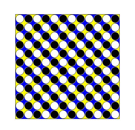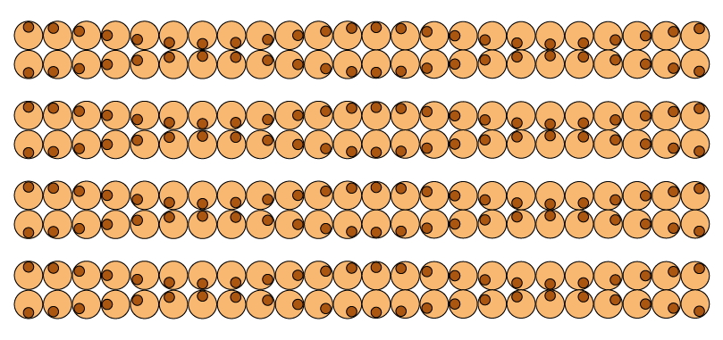 Each row of the larger circles is aligned but appears to distorted toward the positions of the smaller circles.