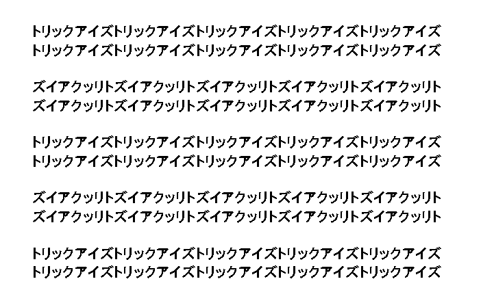 If you write "Trick Eyes Trick Eyes Trick Eyes..." in Japanese, the series of words appear to tilt counterclockwise.