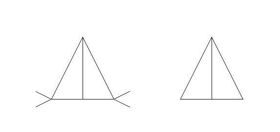 The left triangle appears to be wider in the horizontal direction than the right one, though they are identical in size.