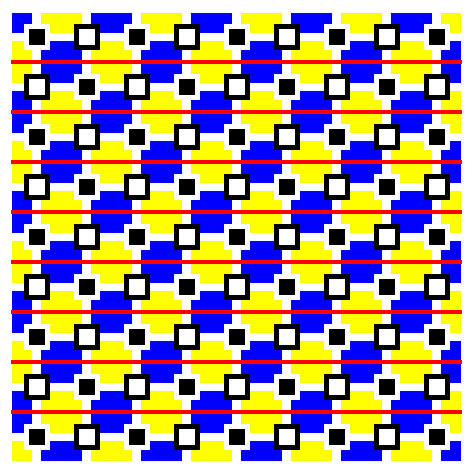 Blue frames that form squares appear to be misaligned at the borders between red and green. I imagine some people do not see this illusion. In addition, the Hermann grid illusion and von Bezold's chromatic assimilation can be observed.