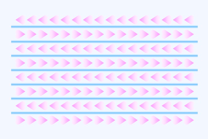 The horizontal blue lines appear to curve. In addition, the rows of hearts appear to move.