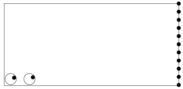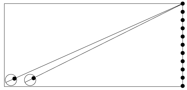 The uppermost dot in the right column is aligned with the oblique line in the left circle, but one of lower dots appears to be aligned.