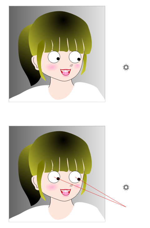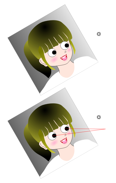 In the upper image, the girl appears to look at the star. Actually, she looks at the point below the star, as shown in the lower image. This eye-direction demonstration as well was first produced by Professor Watanabe.