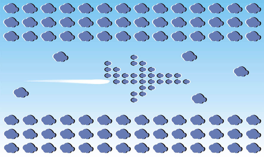 Seiichi's (a graduate student) comment: The rows of clouds appear to tilt clockwise.
