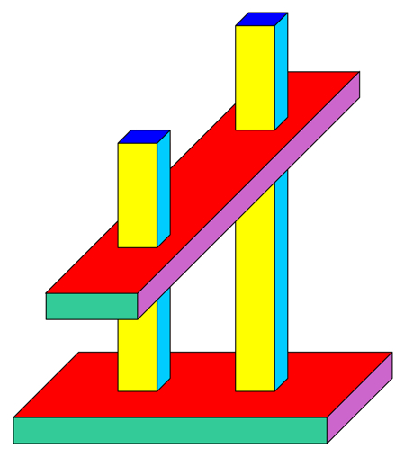 This impossible figure seems to have first been proposed by 'The Father of impossible figures' Oscar Reutersvärd. <July 4, 2011>