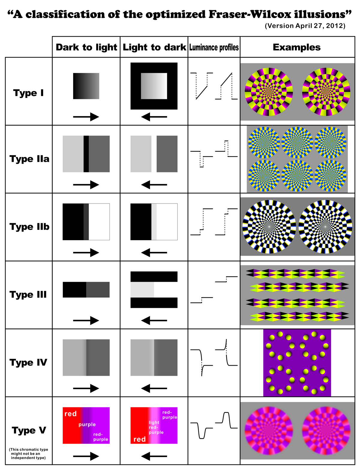 Kitaoka, A. (2006). The effect of color on the optimized Fraser-Wilcox illusion. Paper presented for the 9th L'ORÉAL Art and Science of Color Prize, Tokyo (pp.1-16) (Gold prize was given). MS-Word manuscript (75MB)