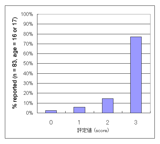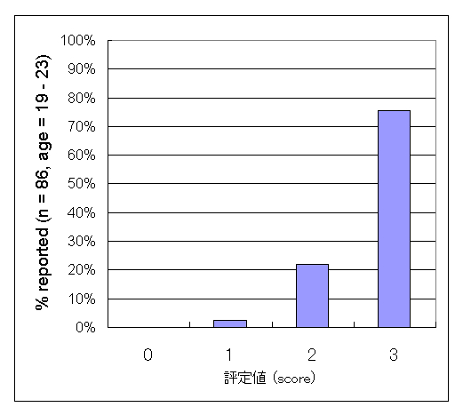 so far. This result agrees with the first survey in VSS2005, USA (May, 2005). But it should be noted that the oldest observer, 88 years old, reported