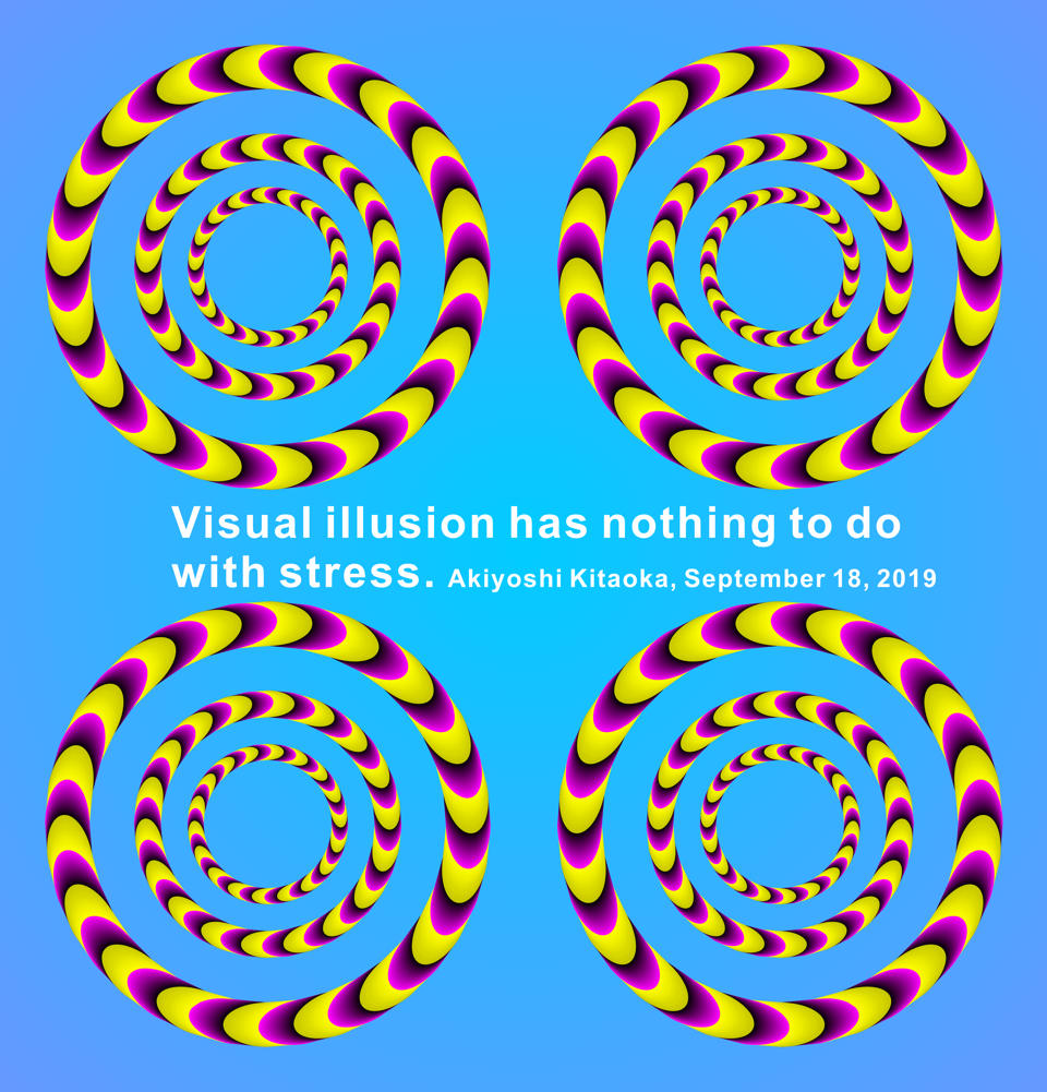 Announcement: A website "Test online the level of stress a person can handle using stress pictures: are they animated, moving?" abuses three of my illusion works as well as claims an unscientific idea. To my knowledge, stress has nothing to do with visual illusion. <April 25, 2011>