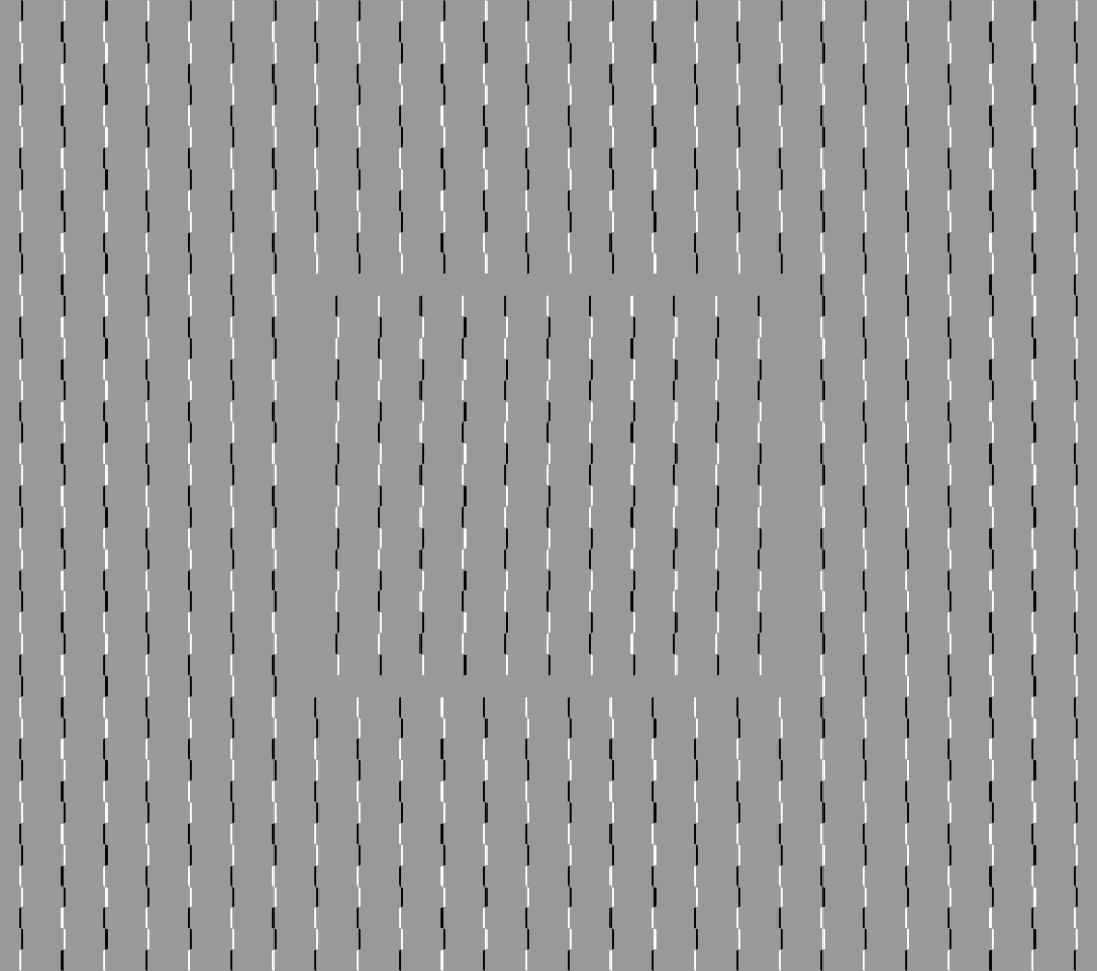 Horizontally aligned rows appear to tilt alternately. In addition, the image appears to move.