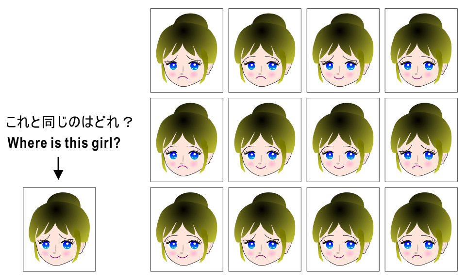 This type of quiz using hidden images depends on the difficulty of visual search of a target in the conjunction search task.