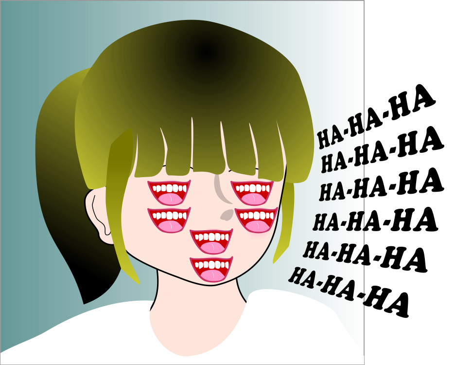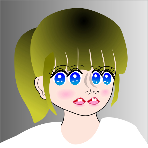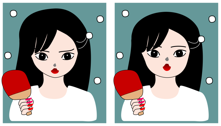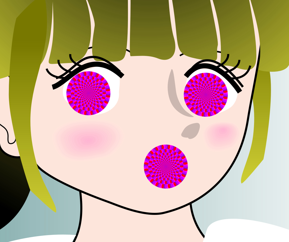 The left eye appears to larger than the right one, though they are the same size. In addition, the mouth appears to be smaller than each eye, though they are the same size.
