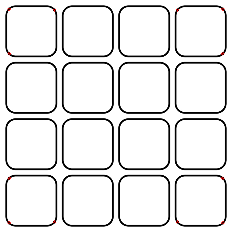 When observers see the six ladybugs on the bottom-left ring, the six on the top-right ring are invisible, and vice versa.