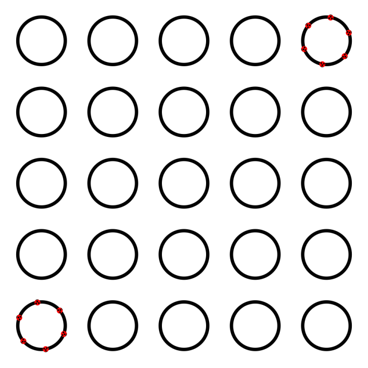 Each red dot appear to disappear when observers see it in the visual periphery.