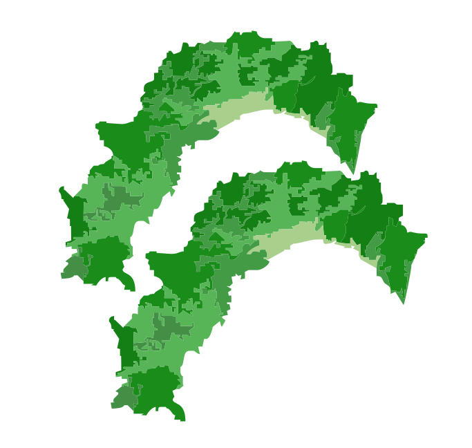The lower map appears to be larger than the upper one, though they are the same in size.