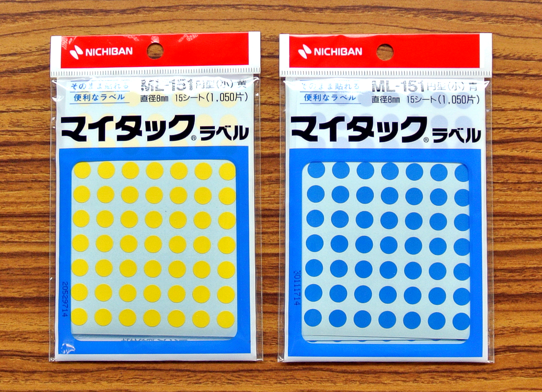 Used seals: ニチバン マイタック(R)ラベル カラーラベル Ø8mm ML-120