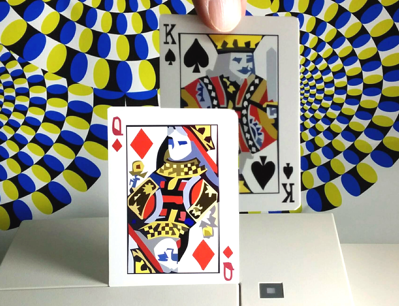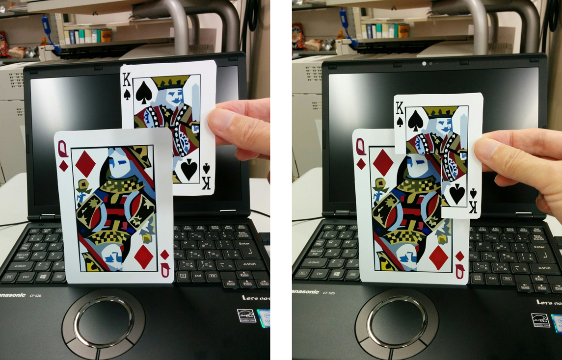 King appears to be behind Queen in the left photo, but the former is actually in front of the latter as shown in the right photo.