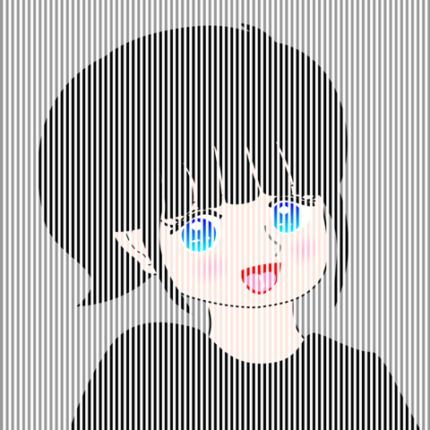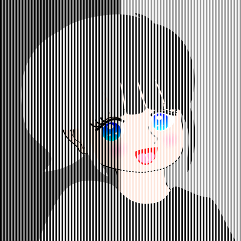 One image shows a girl with black hair and black clothes while the other one with white hair and white clothes. Actually, the apparent black and white consist of the same stripes of red and cyan.