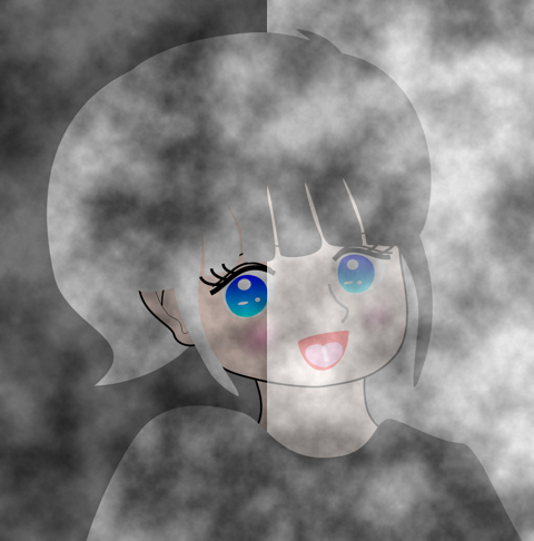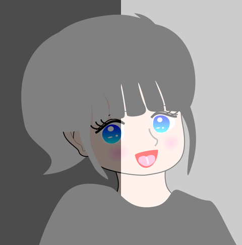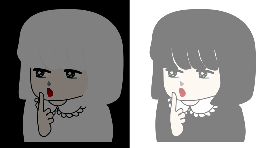 One image shows a girl with black hair and black clothes while the other one with white hair and white clothes. Actually, the apparent black and white consist of the same pattern of grayscale.