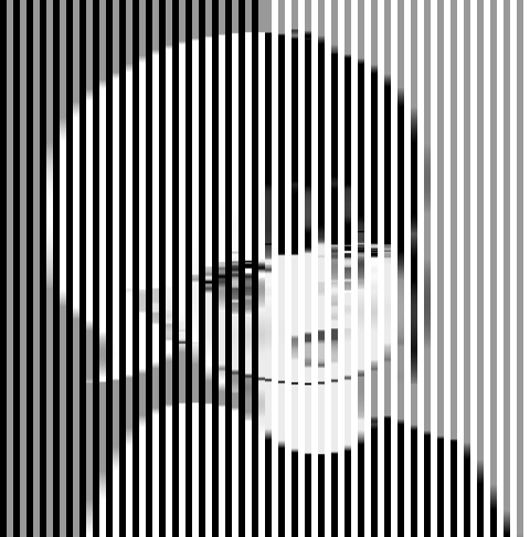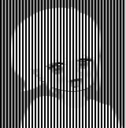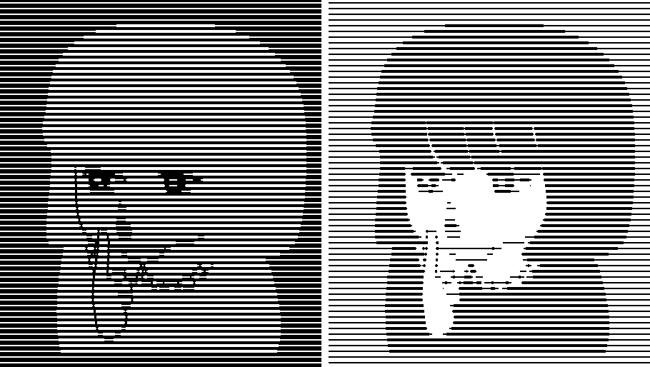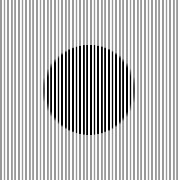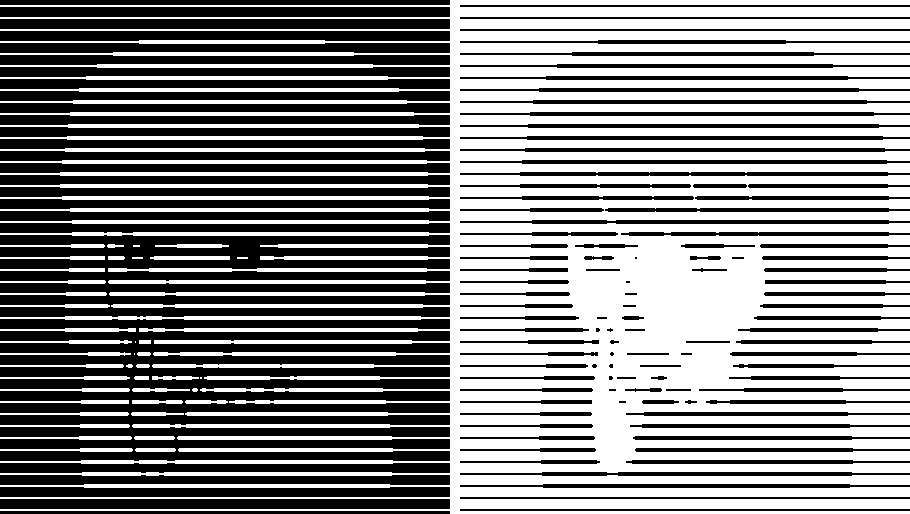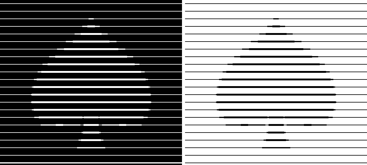 One image shows a black hole while the other one a white circle. Actually, the apparent black and white consist of the same stripes of black and white.