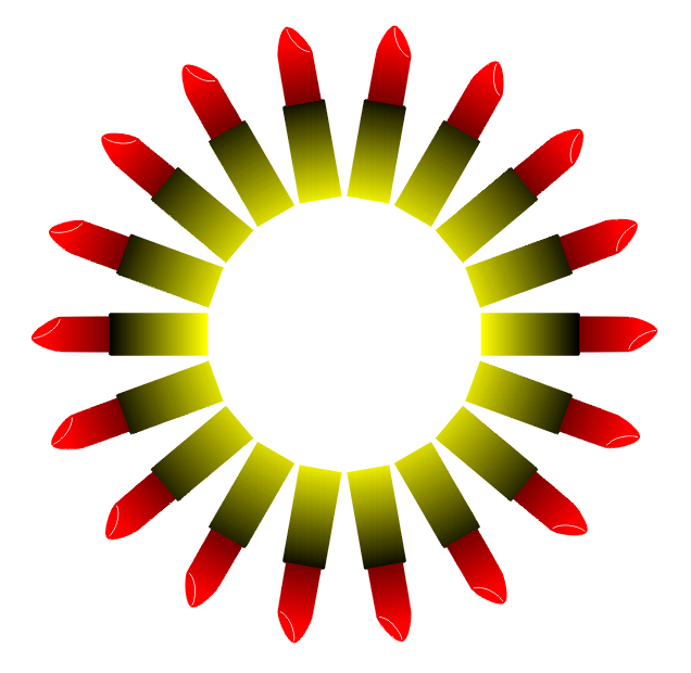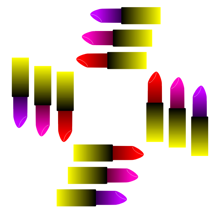 The ring of lipsticks appears to rotate counterclockwise.