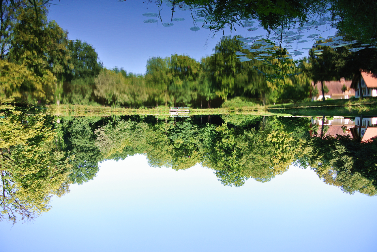 Mirrored images on the surface of water appears to be taller than the original ones.