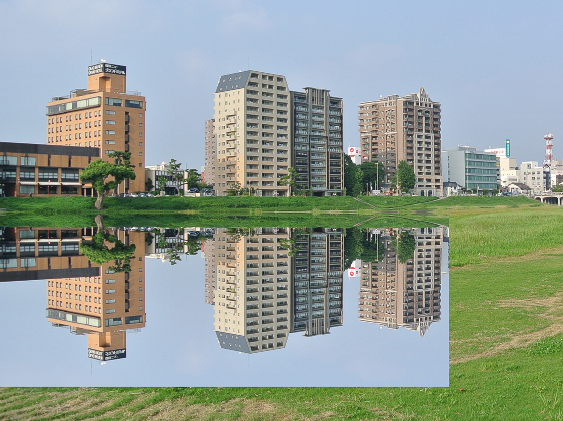 < Mirrored images are shorter in height than the originals. >