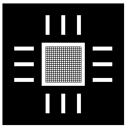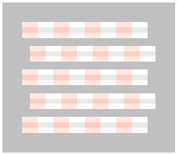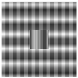Thick stripes or the fine grating of the inset appear to move horizontally.