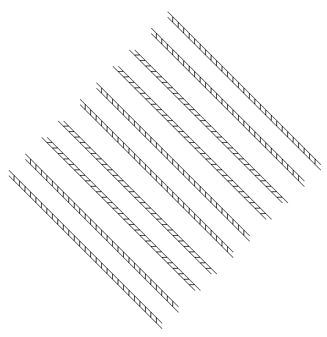 The parallel horizontal lines do not appear to be parallel due to the Zollner illusion.