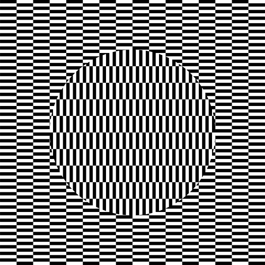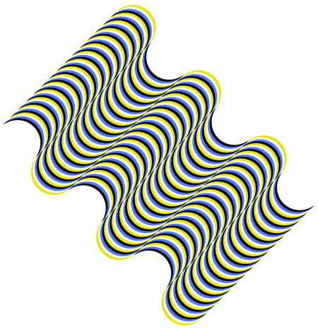 Stripes appear to move. The effect used in the op art of Bridget Riley is also included. In addition, this is a depth-reversible image.