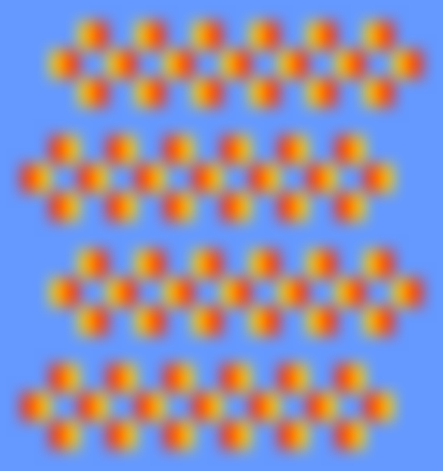 The uppermost and the third rows appear to move leftward, whereas the second and the lowermost rows to move rightward.