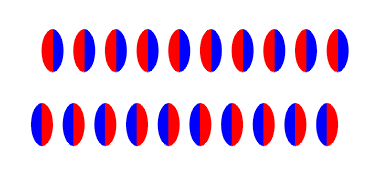 The upper row appears to slide leftward while the lower one appears to move rightward.