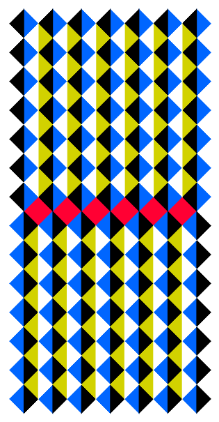 The uppermost row appears to move leftward while the second one to move rightward, and so on.