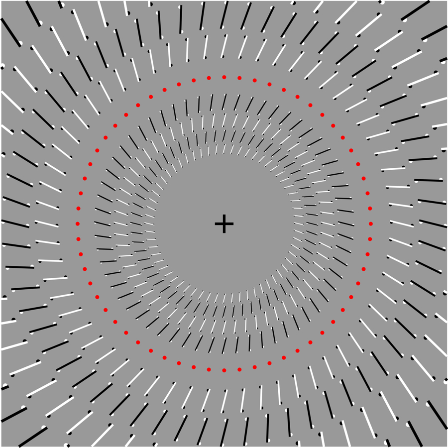 illusion of Y-junctions: The ring made up of red dots appears to rotate