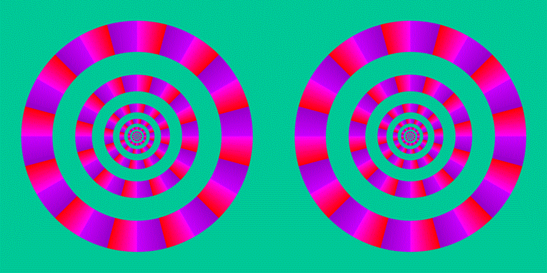 When observers see the left image, both images appear to rotate counterclockwise. When observers see the right image, both images appear to rotate clockwise.