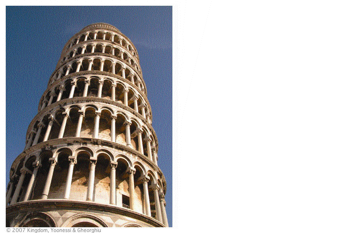 Kingdom, F. A. A., Yoonessi, A., and Gheorghiu, E. (2007) The Leaning Tower illusion: a new illusion of perspective. Perception, 36, 475-477.