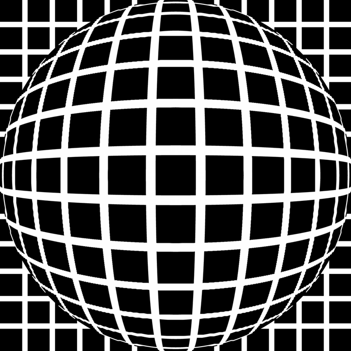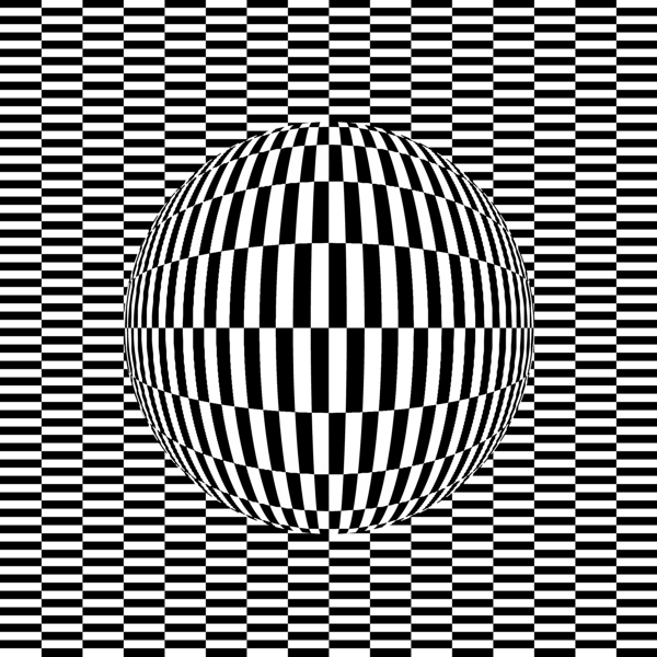 Note: The bulging efffect or technique was proposed by Victor Vasarely through many works. The first work including this effect might be "ARLEQUIN" (1936).