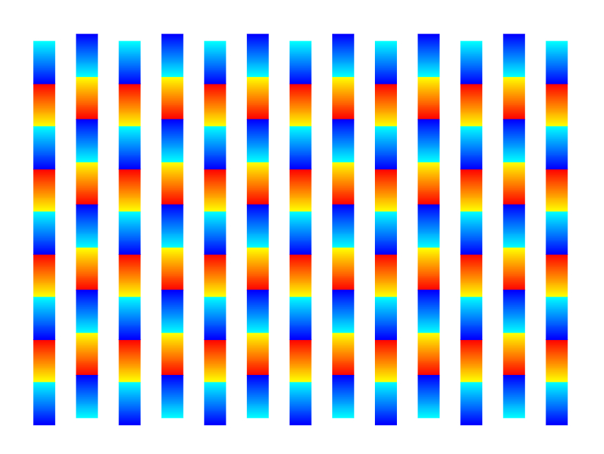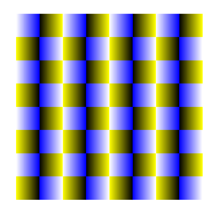 The checkerboard appears to glare. Each of the four columns appear to bend in the depth direction.