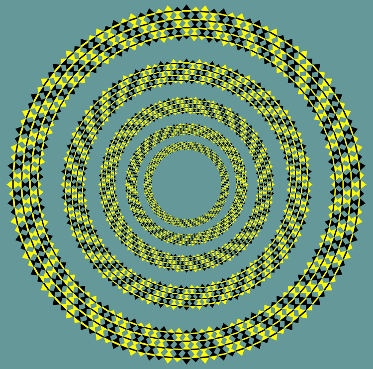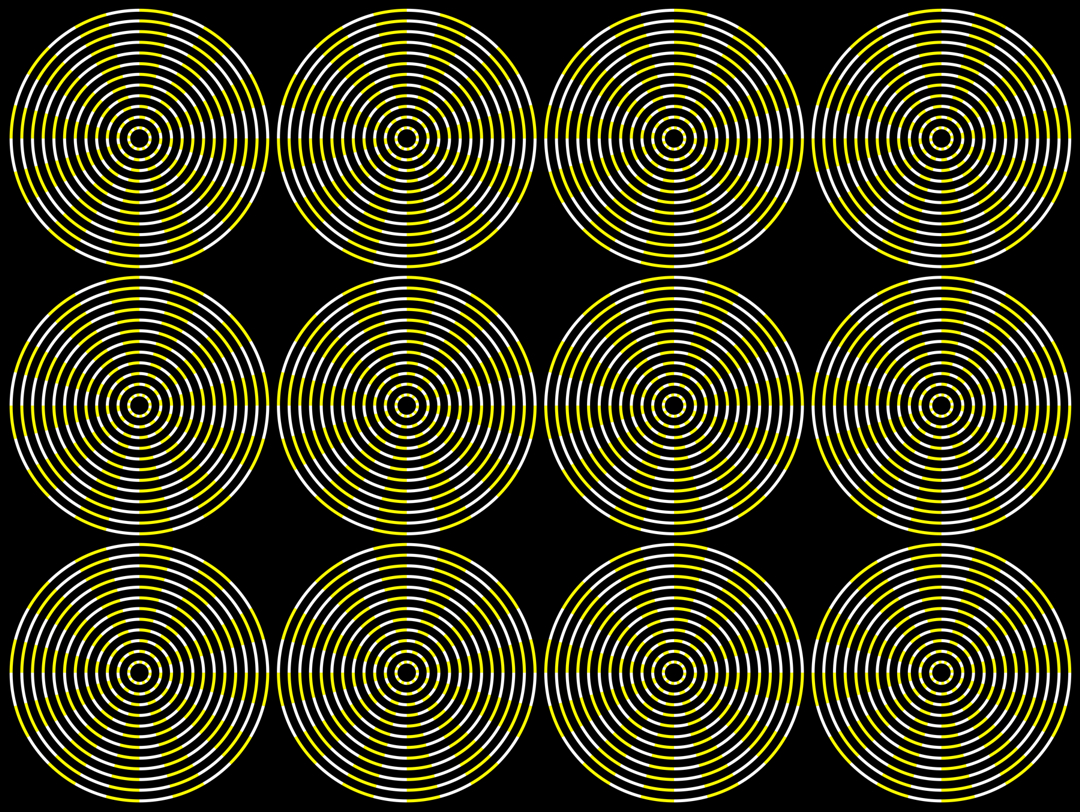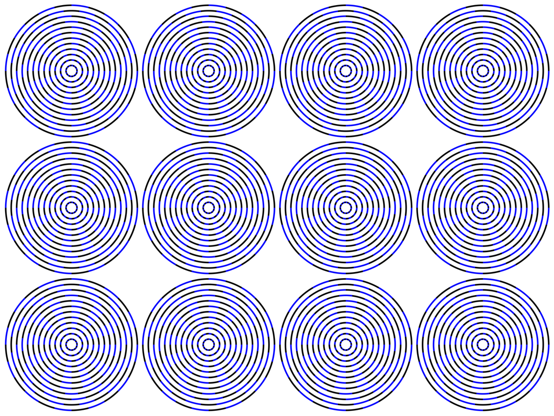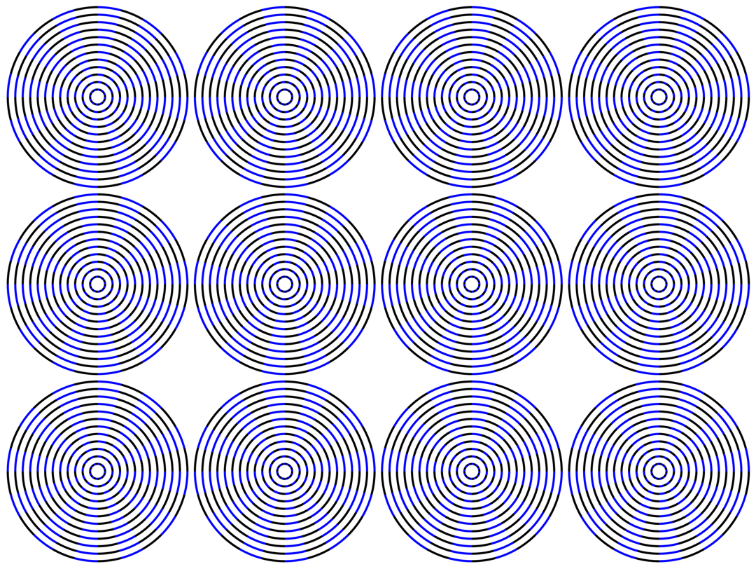 Concentric rings appear to be distorted. In the gaps between rings, the Enigma effect is observed.